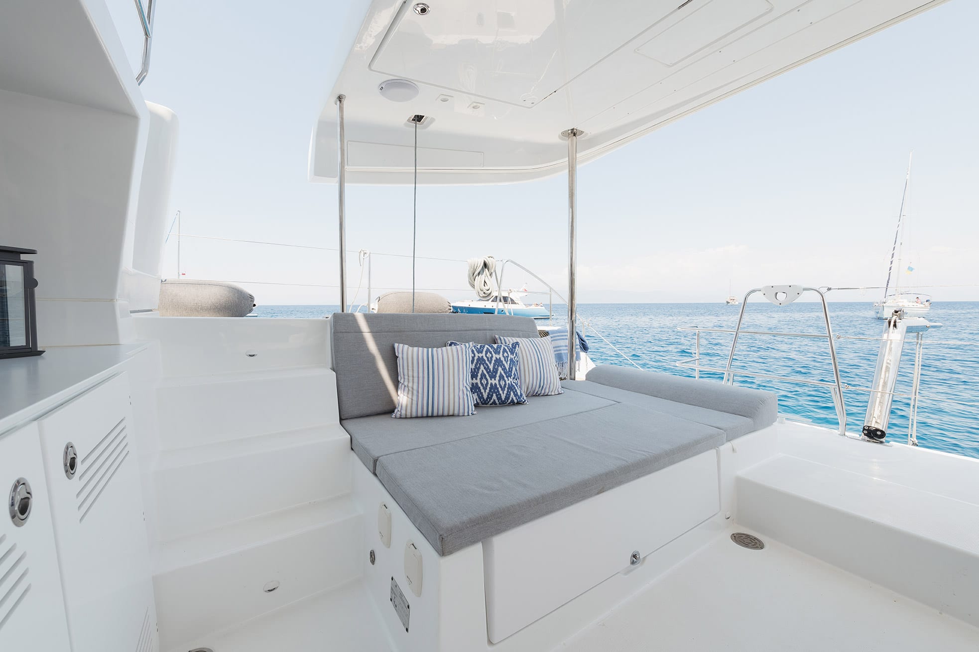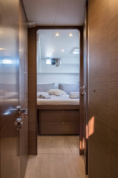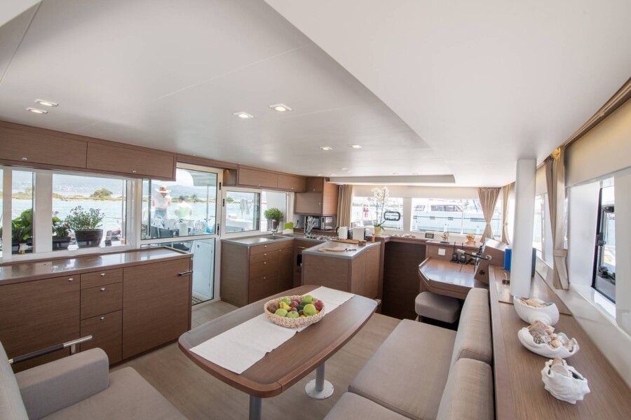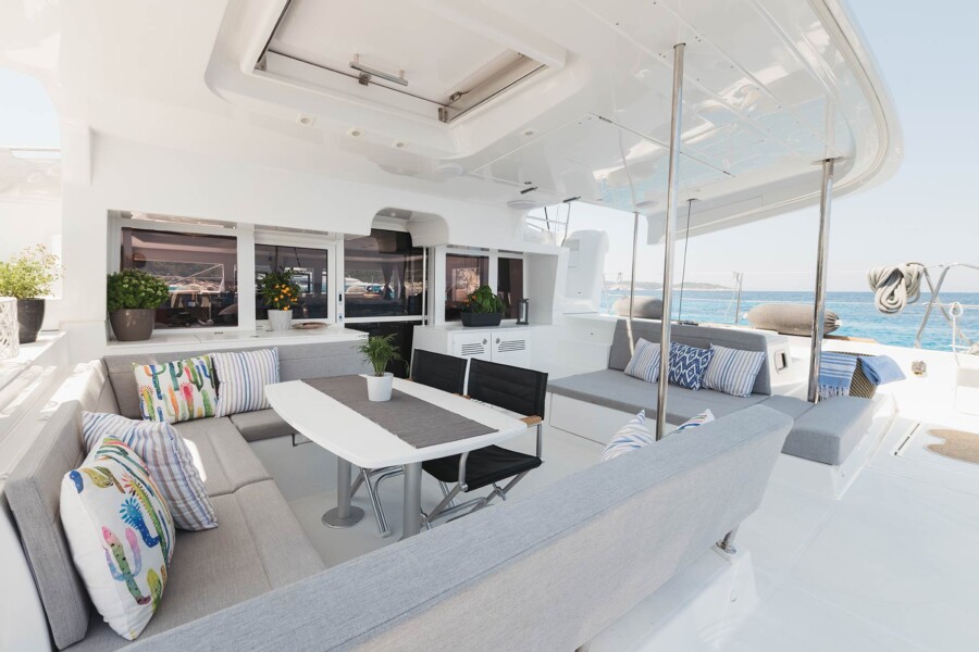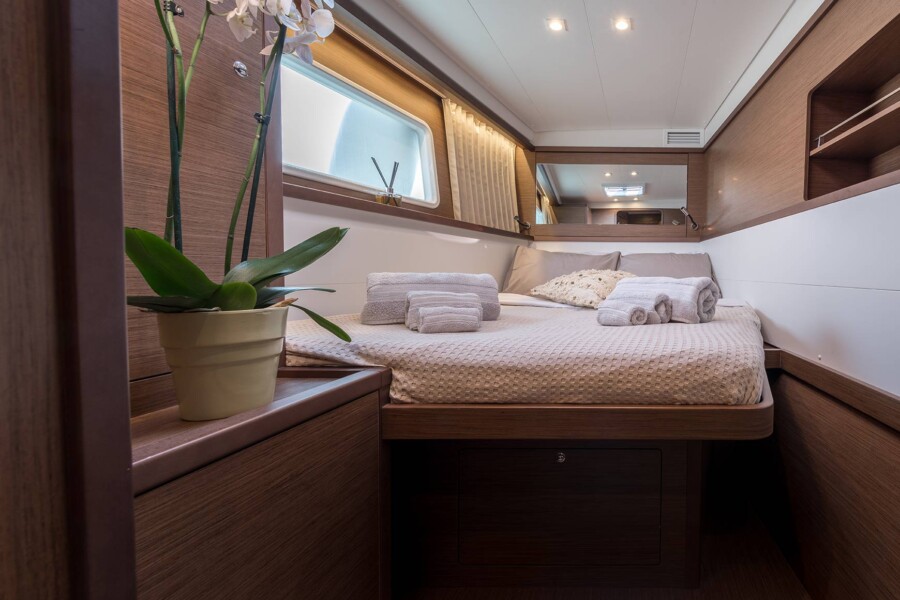 This luxurious catamaran sports an elegant design with exceptional stability and attention to small details. It can host up to 8 people in four cabins with ensuite bathrooms and individually controlled A/C thermostats. It offers several seating and sunbathing areas on deck. The interior saloon boasts large panoramic view windows and is equipped with state-of-the-art technology to ensure your personal comfort and enjoyment.